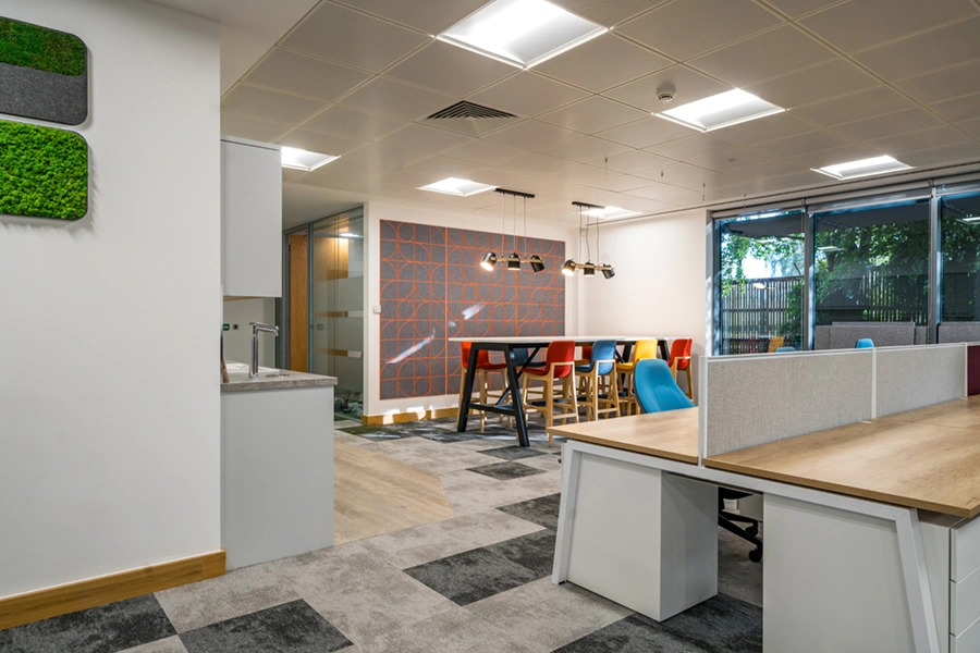 The Acoustics Company est fière de présenter un projet intégrant nos panneaux Etch Duo personnalisés, conçus pour améliorer les performances acoustiques et l’esthétique des espaces de détente et des salles de réunion. Ce projet illustre notre engagement à améliorer les environnements de travail grâce à des solutions acoustiques sur mesure.